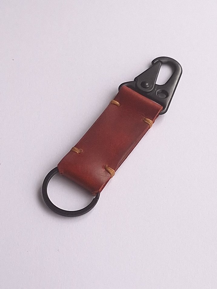 Hakiki Deriden yapılmış el işçiliği ile dikilmiş şık, kullanışlı, fonksiyonel anahtarlık. Deri kısım 6.5 cm uzunluk, 2.5 cm genişlik, 0.4 cm kalınlıktadır. Özel günler için harika bir hediye alternatifi. Üretimin hiçbir aşamasında makine kullanılmayıp geleneksel yöntemlerle elde kesilip çift iğne tekniği kullanılarak elde dikilmektedir. Deri doğası itibariyle birbirinden farklı doku ve izlere sahip bir maddedir ve kullanıldıkça güzelleşir. Yüksek kaliteli deri malzemesi ile üretilmiş, uzun ömürlü kullanım sunar. Metal detayları sayesinde dayanıklılığı artırılmış ve şık bir görünüm kazandırılmıştır.