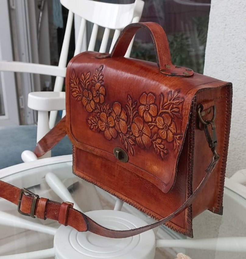 hakiki dana derisinden el işçiliği özenle yapılmış Bayan çantası. el dövme işi, dikimi ve boyasins kadar hepsi el işçiliği sıfır ürün. taban rengidir.