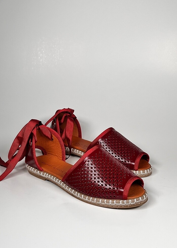 Hakiki deri bilekten bağlamalı kadın espadril ayakkabı