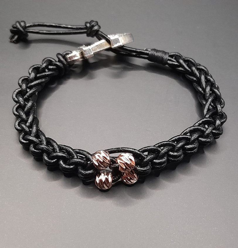 Örgülü siyah tasarıma ve koyu metalik detaylara sahip erkek biker bileklik, gotik ve rock punk tarzını yansıtıyor.