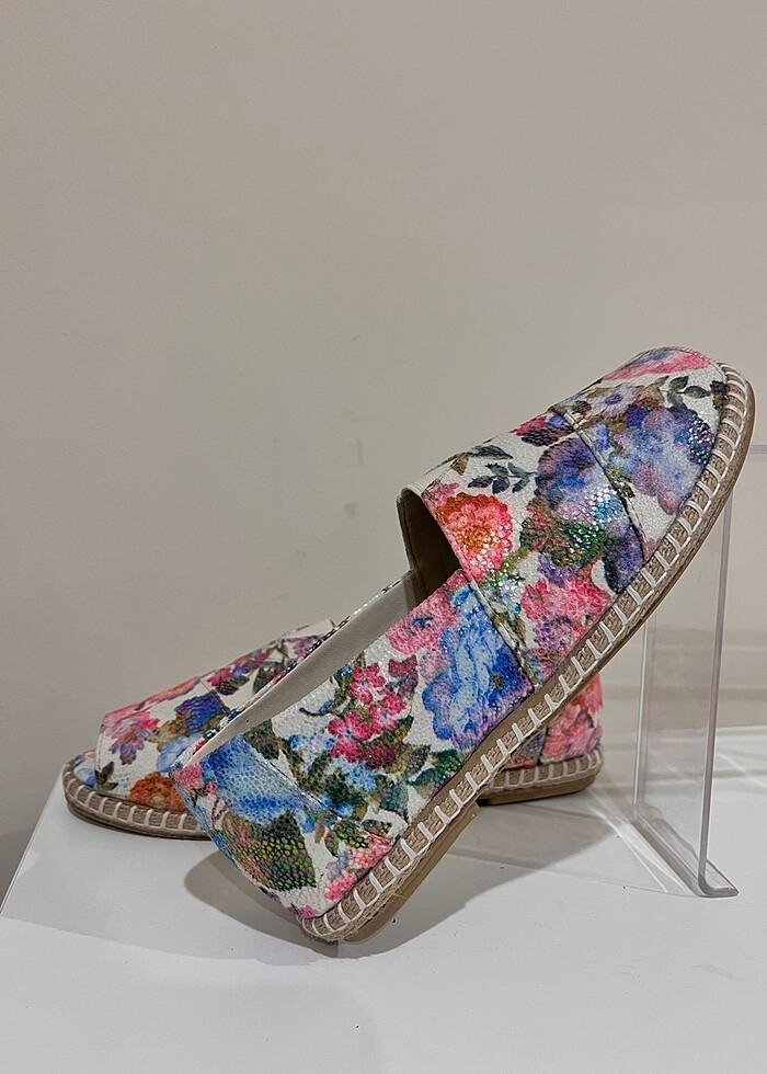 hakiki deri çiçek desenli espadril