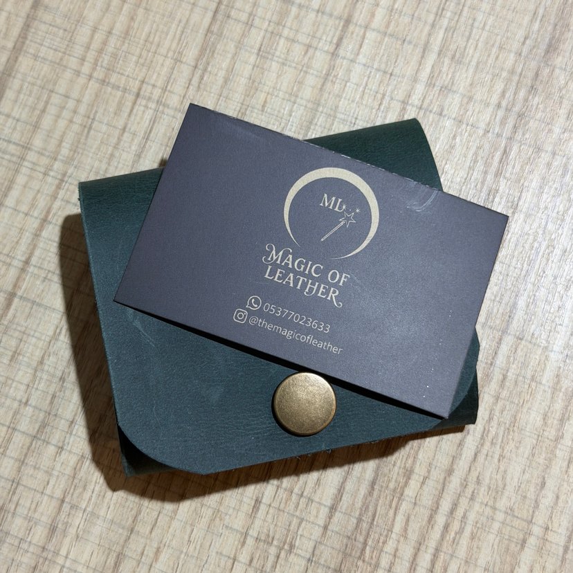 Ürün tamamen el işçiliği ile üretilmiştir. Hakiki deri kullanılmıştır. Ağırlıklı yeşil deri ve yeşil mumlu ip kullanılmıştır. İç kısmındaki kartlık turuncu deriden üretilmiştir. Fotoğrafta 7000 lira nakit vardır. Daha fazlasını da alabilir. Talebe göre farklı renklerde de üretilebilir.