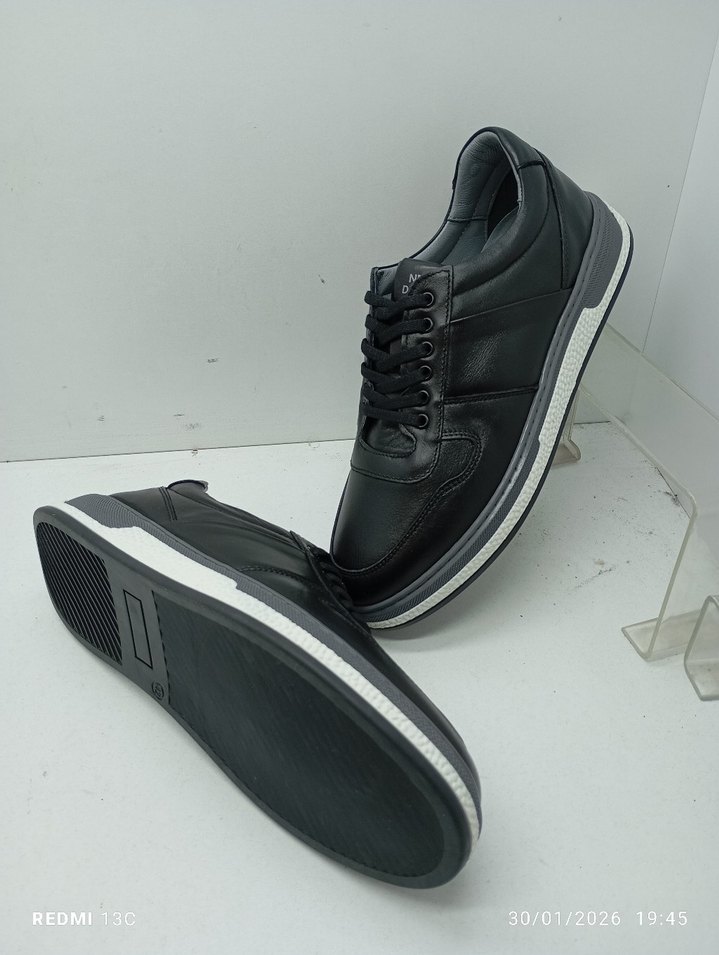 HAKİKİ DERİ Gri tabanlı siyah bağcıklı erkek günlük spor ayakkabısı, sokak stili ve sportif görünüme uygundur. Rahat ve şık bir seçenektir.