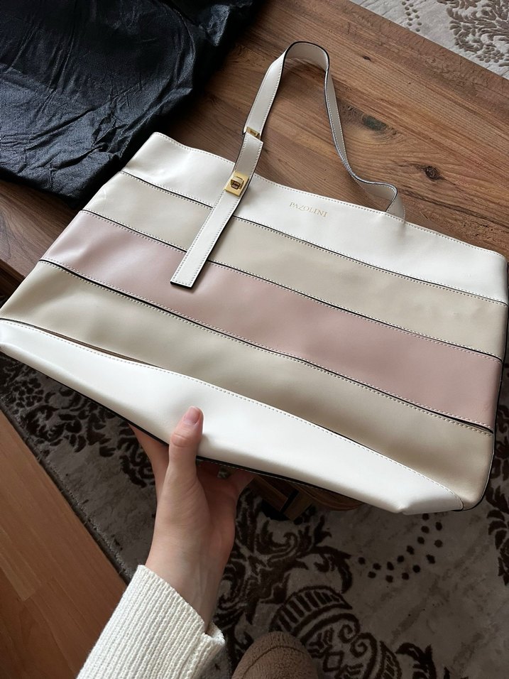 Yurtdışından hediye geldi hakiki deridir hiç kullanılmadı koruma çantası da mevcut Pastel tonlarda bej çizgili deri çanta, tokalı askısı ve Paris sokak stiliyle günlük kullanıma uygun.