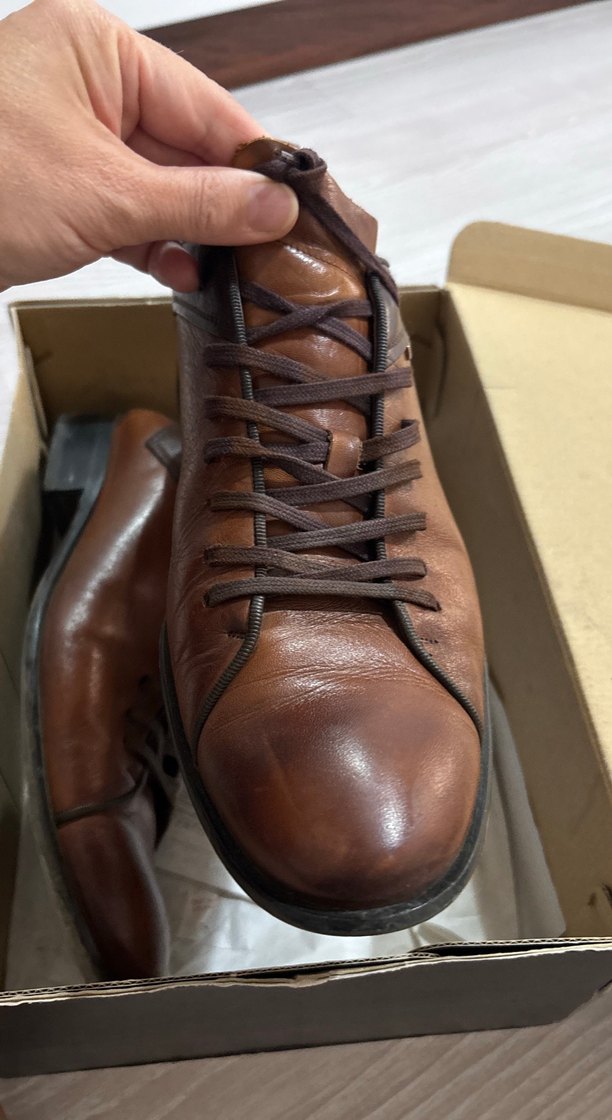 Hakiki deri Kahverengi Erkek Ayakkabısı , çok az kulllanıldı, şuan bile hiç giyilmemiş gibi pırıl pırıl, yumuşacık hakiki deri, çok kaliteli.Parlak kahverengi bağcıklar, erkek sokak stili ayakkabılar için minimalist ve şık bir görünüm sunar. Günlük ayakkabılara uyum sağlar. 42 numara, kutulu gönderim,LİBERO marka yenisinin fiyatı 3-4 bin arasında , internetten bakılabilir. % 100 müşteri memnuniyeti