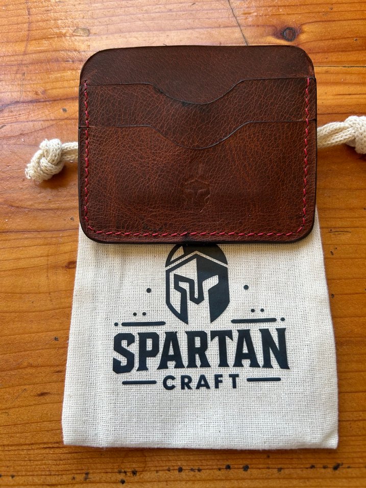 Koyu kahverengi deri, baskılı desenli kartlık. Spartan Craft marka kese ile birlikte gelir. Özelikler - Hakiki Deri Tabacco toscana -5 bölmeli 4 kart 1 para -toplam 4-8 kart kapasitesi