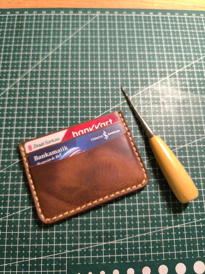 Hakiki deri kartlık cüzdan. Tamamen el işçiliğidir. Yanında hakiki deriden anahtarlık hediye ediyoruz.