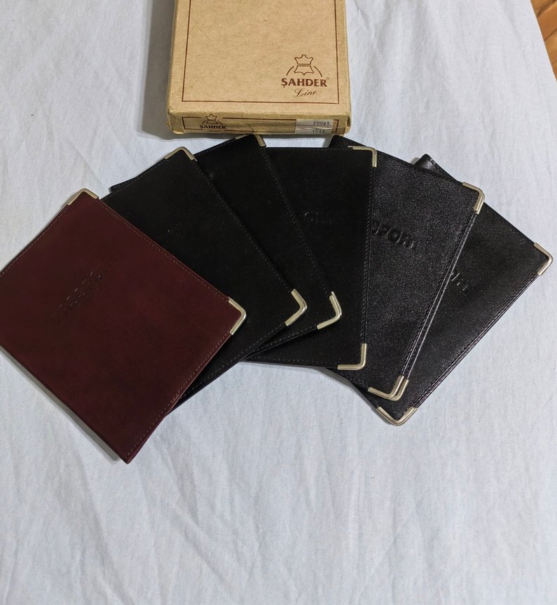 Metal köşe koruyuculu,orijinal deri, baskılı detaylara sahip siyah ve bordo pasaport veya ruhsat kabı SAHDER markalı, klasik ve dayanıklı tasarım.