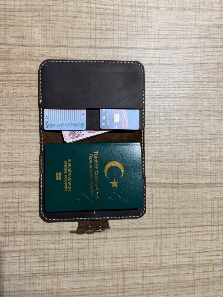 Ürün hakili deriden en işçiliği ile üretilmiştir. Pasaport dışında kart ve nakit için de gözleri bulunmaktadır.