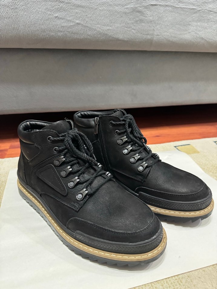 Siyah bağcıklı, kauçuk malzemeden yapılmış erkek botları, günlük sokak stili için uygundur. Rahat tabanlı ve sade tasarımlıdır. Hakiki deridir.