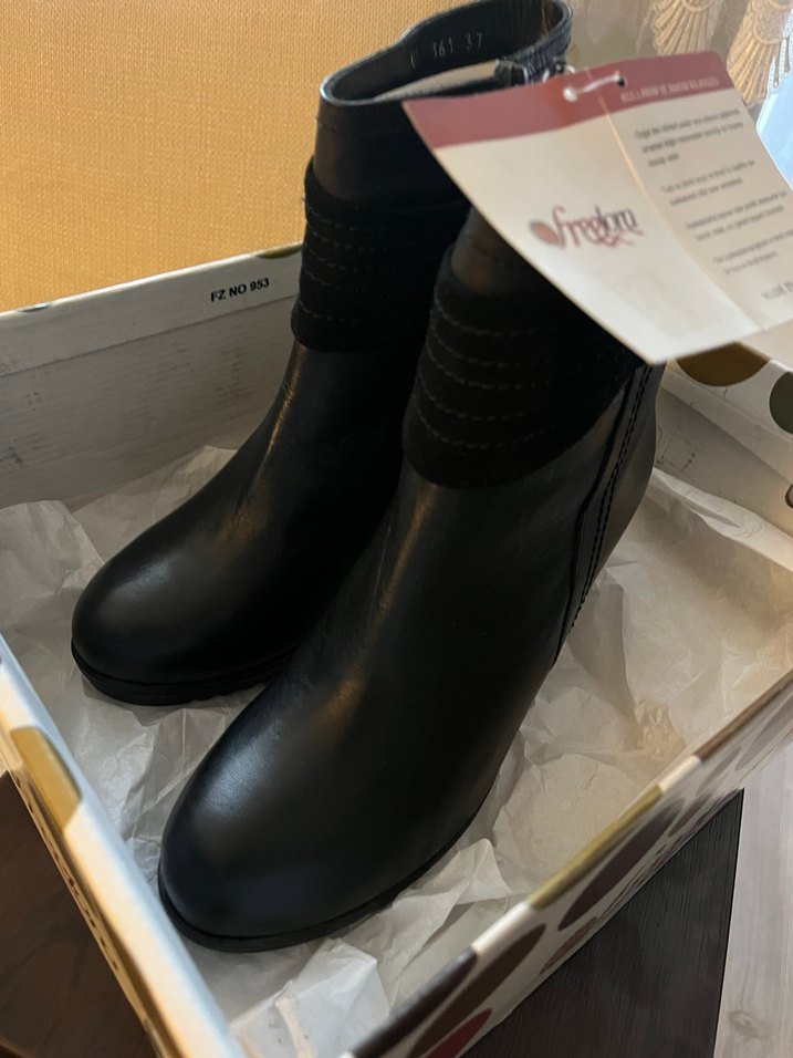 Kadınlar için siyah dolgu topuklu, hakiki deri bot. Günlük kullanıma uygun, desen içermeyen, trend be şık bir tarzda.