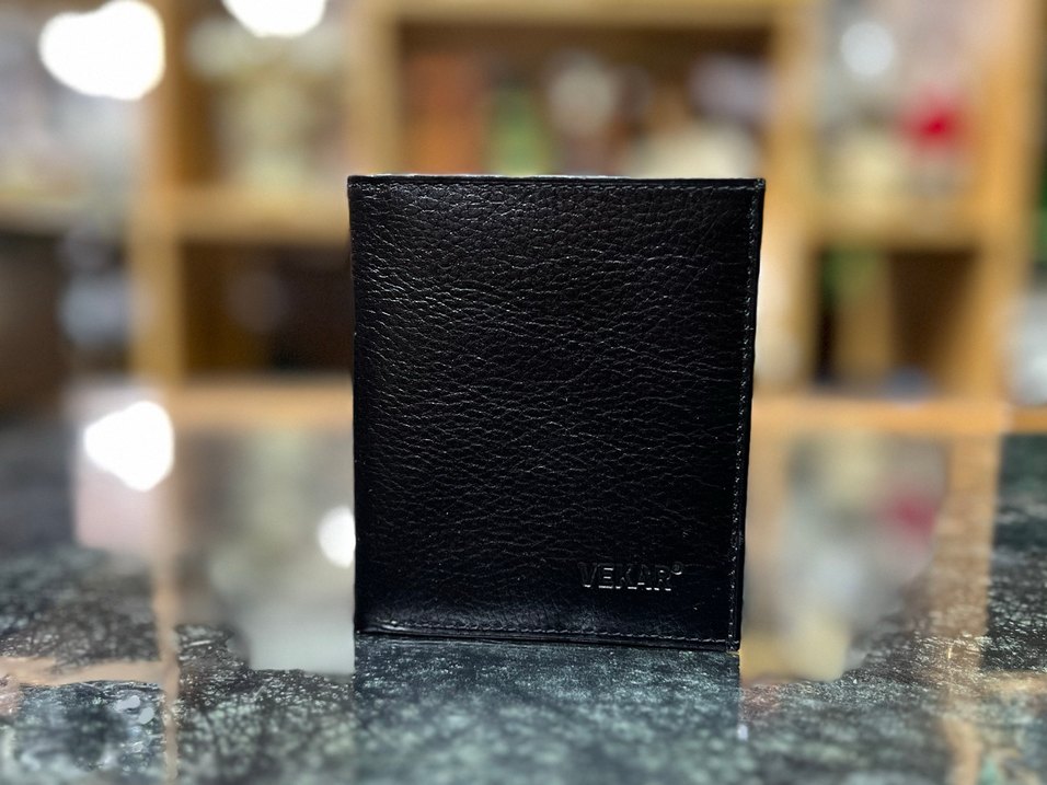 Siyah erkek cüzdanı, düz ve modern tasarıma sahiptir. İş ortamına uygun, desen içermeyen sade bir stildir.