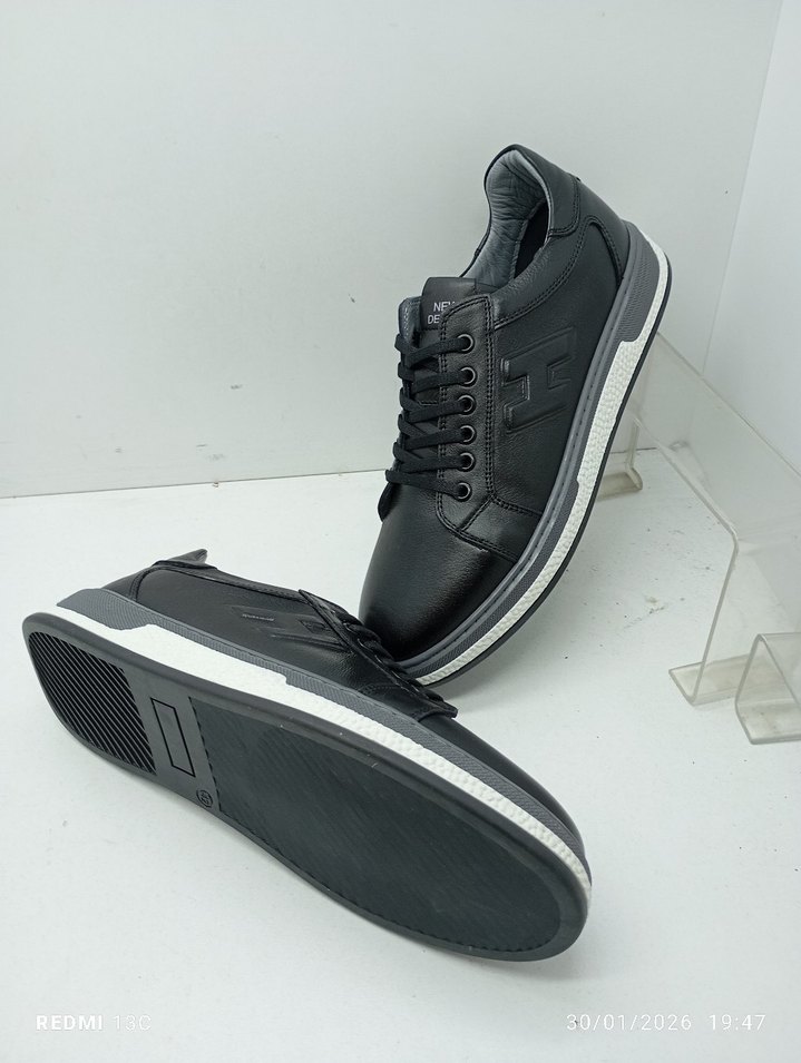 Hakiki Deri Siyah Erkek Spor Ayakkabı Bağcıklı