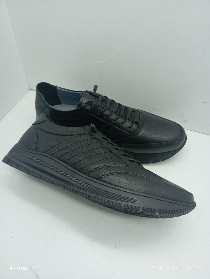 Hakiki Deri Siyah Erkek Spor Ayakkabı Bağcıklı