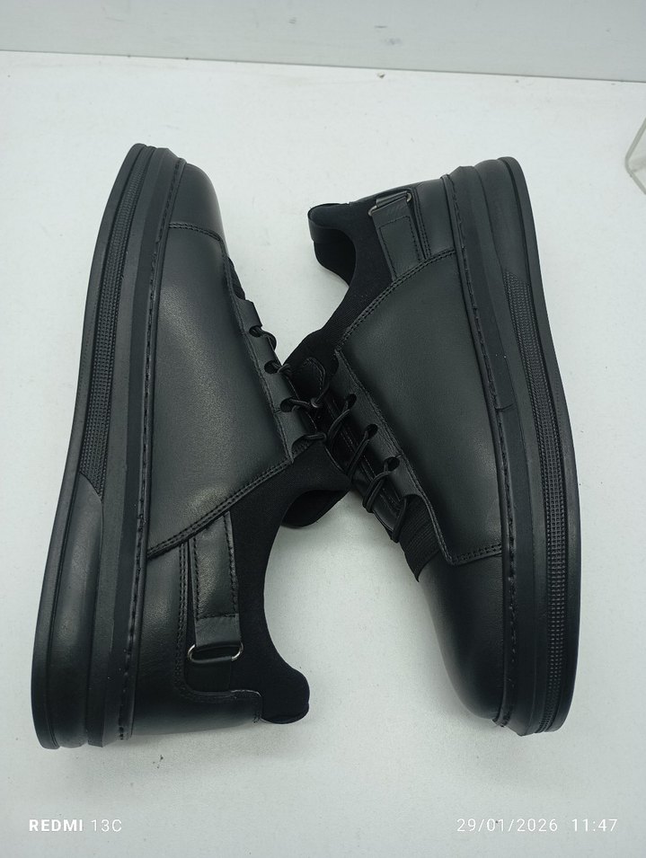 Hakiki Deri Siyah Erkek Spor Ayakkabı, Kemer Detaylı