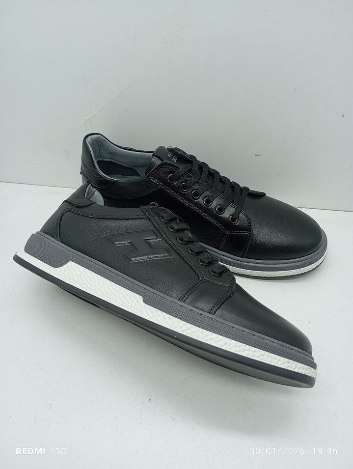 Hakiki Deri Siyah Erkek Spor Ayakkabı - Sokak Stili