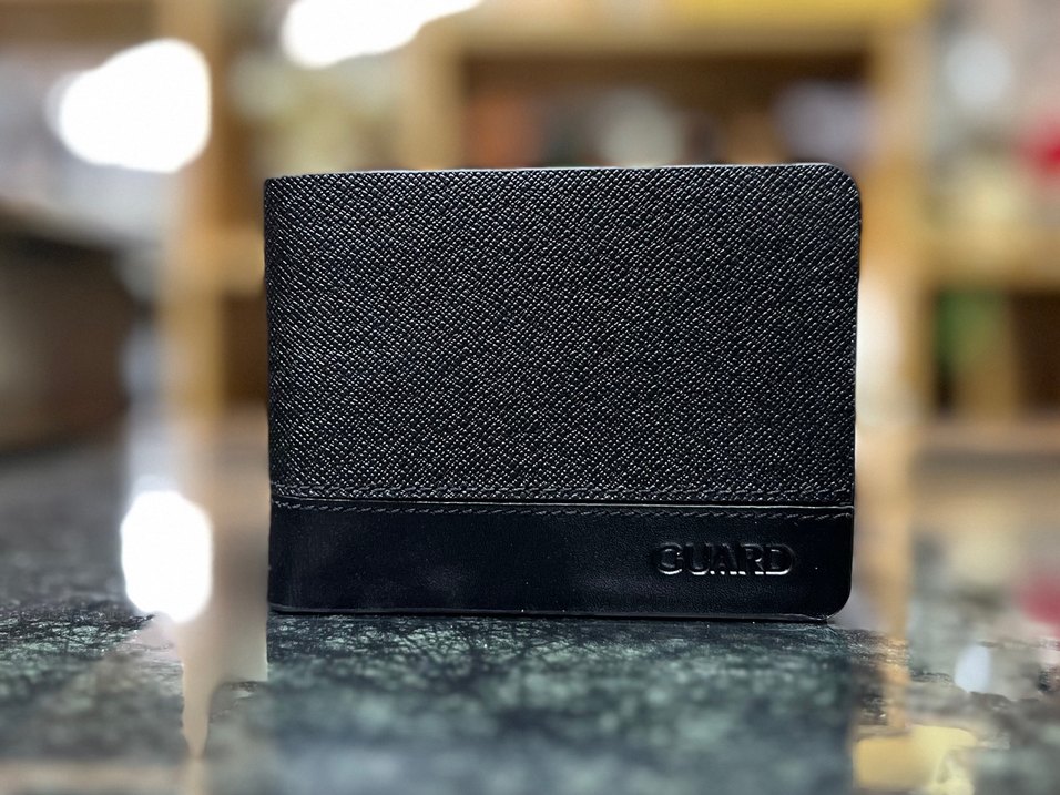 Siyah yılan desenli dokusu ve şık GUARD logosu bulunan modern klasik erkek cüzdanı. İş hayatına uygun.