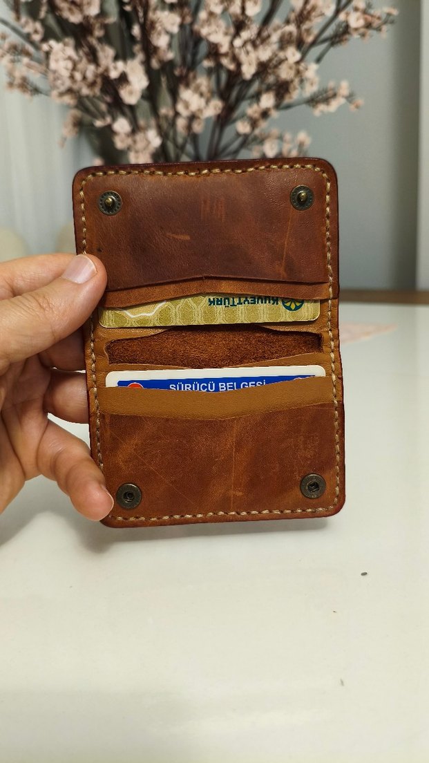 Hakiki deri Taba rengi Minimalist Erkek kartlık