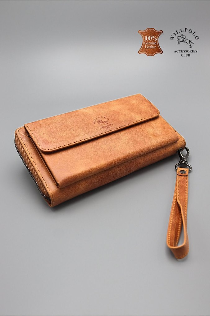 Hakiki Deri Telefon Bölmeli Crazy Taba Lüx El Çantası Portföy Cüzdan
