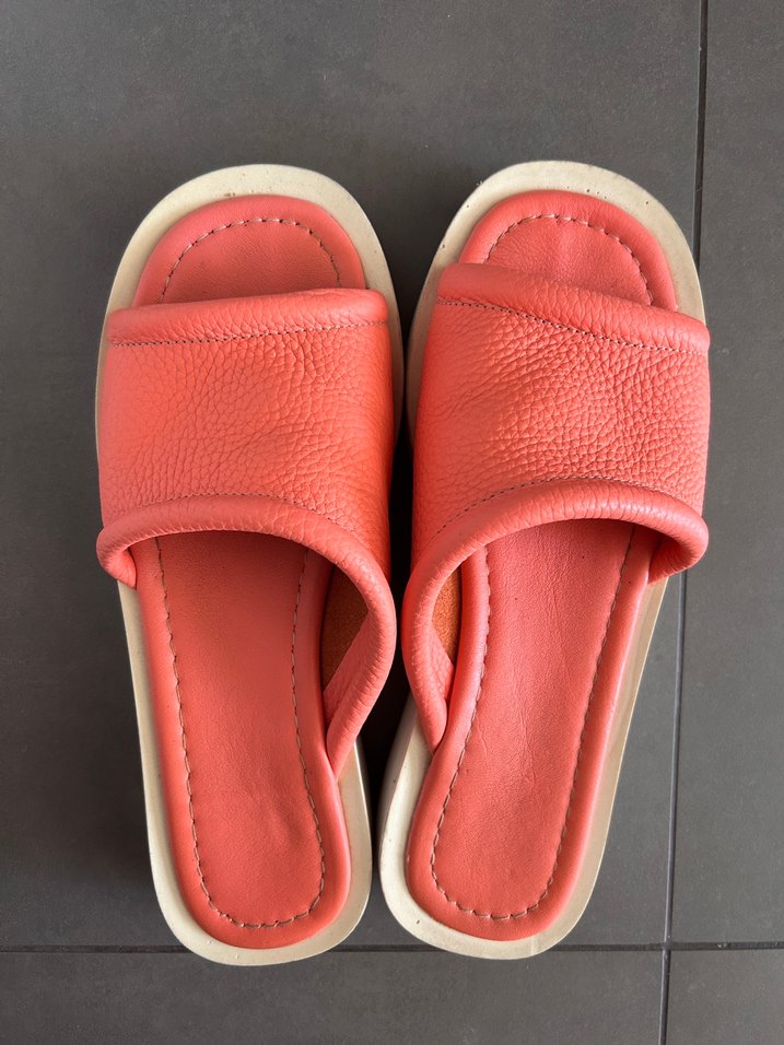 Sayılı,kapalı alanda giyildi,rengi pembe ile nar çiçeği arasında bir renk,kusursuz,resimdeki gibi. Beyaz tabanın alt kısmı ve üstü aldığımda da böyleydi. 37 numara,dar kalıp