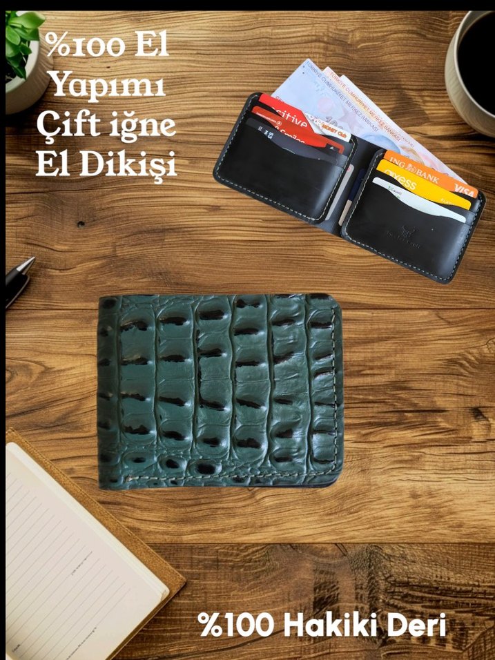 Hakiki Deri Timsah Derisi Desenli Erkek Cüzdan El Yapımı