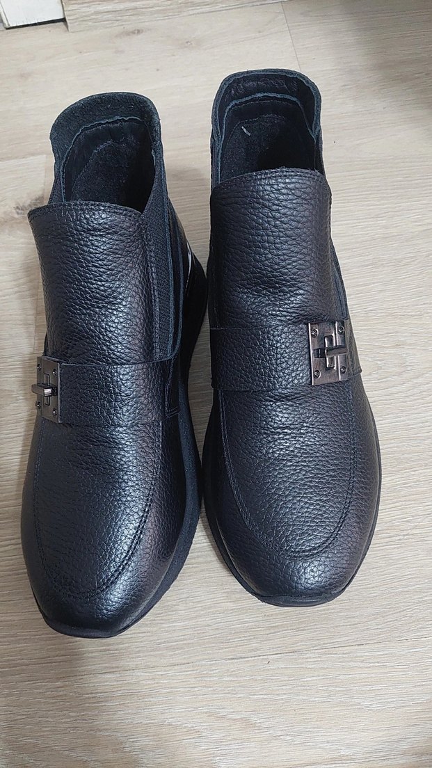 hakiki deri Sokak tarzına uygun, tokalı siyah bayan bot. Dokulu yüzeye ve desen içermeyen koyu renge sahiptir.