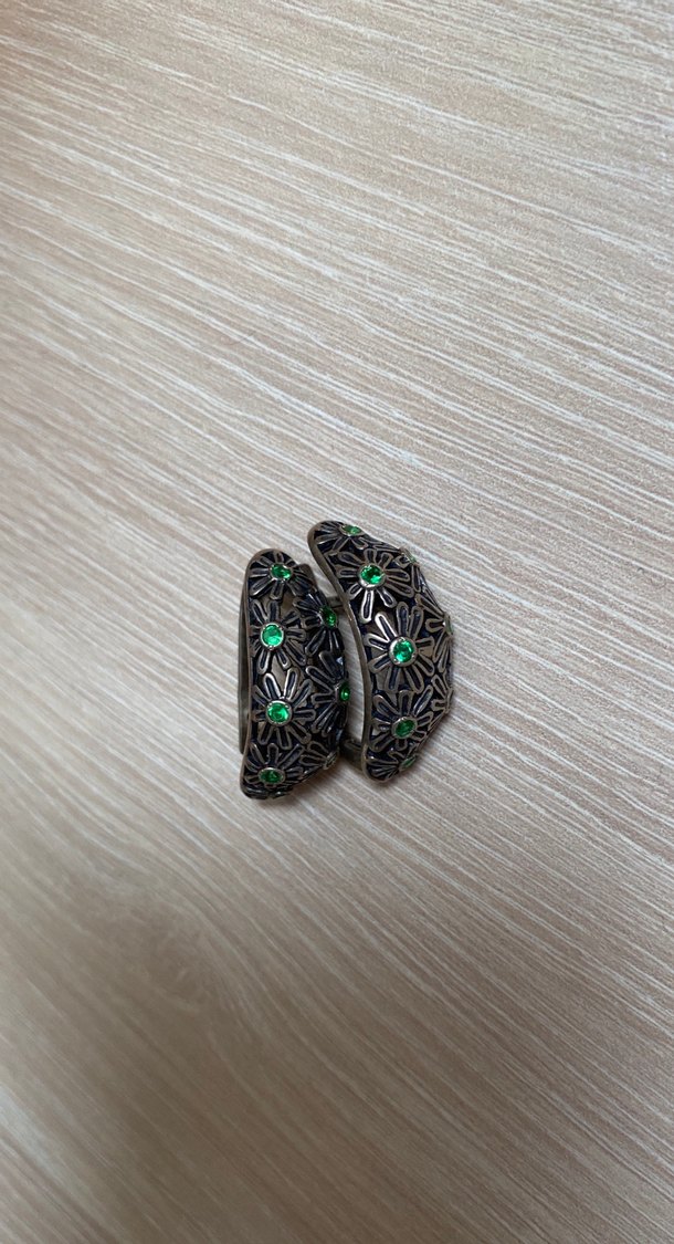 Yeşil taşlı boncuk detaylı, mini uzunlukta bohem tarzda yılan desenli vintage küpeler, romantik akşamlar için uygun.GÜMÜŞ #gümüş #küpe