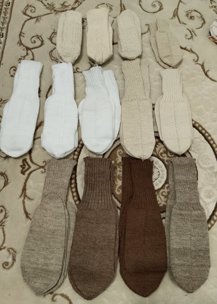 Hakiki koyun yününden elde örülmüş çorap. sıfır ürün erkek çorabı dan iki çift açık renk kaldı. bayan çorapları var. Bir çiftinin fiyatı 350 tl
