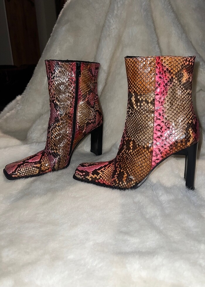 Hakiki Yılan derisi Vintage Y2K Le Silla Marka kare burun bot