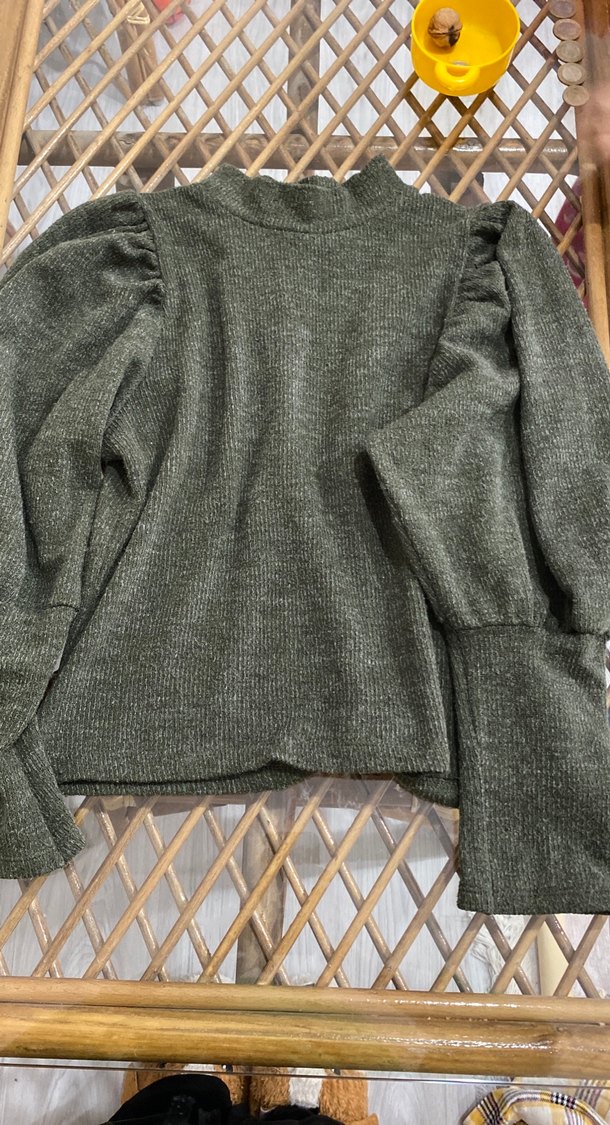 Hakirenkte, yüksek yakalı ve uzun kollu örgü kazak. Bol kesimi ve düz deseniyle rahat ve günlük kullanıma uygun.