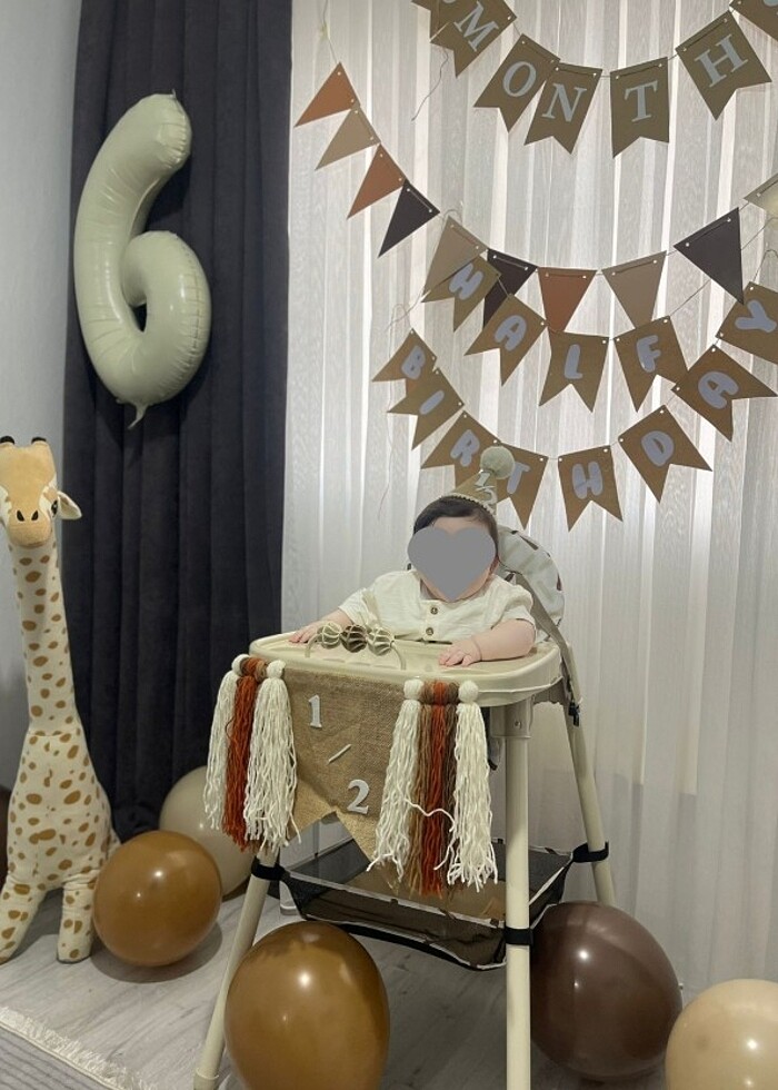 Half birthday banner 6 months banner Üçgen flamalar Ponpon flamalar Mama sandalyesi 1/2 banner 6 sayılı balon 9 tane balon 1/2 şapka Portakal kurusu ve yıldızli banner Dişim çıktı ve ek gidaya geçti yazısı