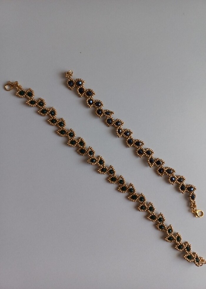 Kum boncuklardan yapılmıştır. Kaliteli, dökülme, soyulma vs olmaz. 1 halhal ve 1 bileklik fiyatıdır. Farklı çeşitler için diğer ilanlarıma bakabilirsiniz.