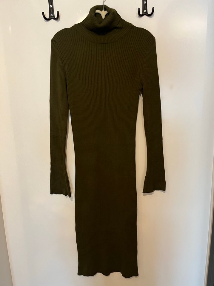 Haki,balıkçı yaka ve uzun kollu, vücuda oturan uzun triko elbise. Yumuşak örgü kumaştan, minimalist ve trend rahat stil sunar. S ile M bedene uygundur Esnek yapılı elbise