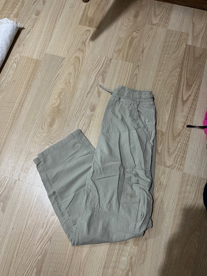 Haki keten kumaştan, rahat kesim ve midi boyda olan bu pantolon, günlük sokak stili için uygundur ve zahmetsiz şıklık sunar.