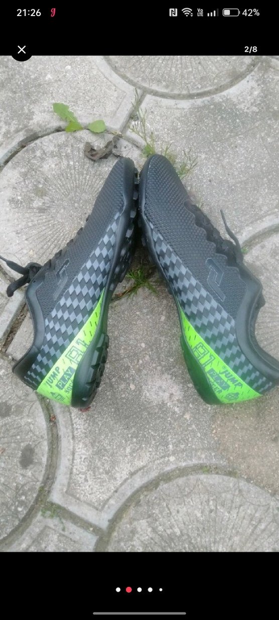 JUMP marka erkek futbol ayakkabısı, kayışlı, yılan desenli, gri ve yeşil renklerde. Kauçuk tabanlı, spor ve günlük kullanım için uygundur. ⚽43 numara sıfir ürundur