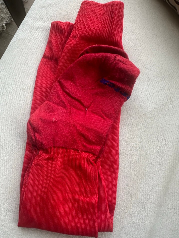 Parlak kırmızı renkte, desen içermeyen, yumuşak ve rahat kumaştan erkek çorabı.