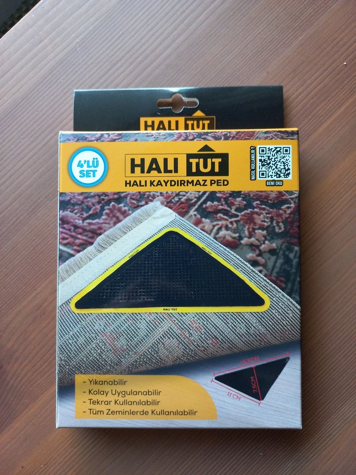 Halı kaydırmaz pedin 4'lü seti. Yıkanabilir, kolay uygulanabilir, tekrar kullanılabilir ve tüm zeminlerde kullanılır. ️