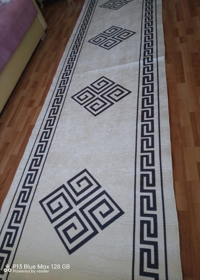 Dot taban kadife yüzeyli 9 milim kalınlıkta makinede yıkanabilen uçları püsküllü özel kesimdir ölçü büyük olduğu için satıştadır resimli siyah bez olarak çıkmış ürün beyaz koyu gridir sıfır üründür paketinde makine halısı değildir eni 1 metre 10 santim uzunluğu 4 metre 10 santimdir açıklamayı dikkatli okuyun lütfen iade kabul etmiyorum sıfır üründür