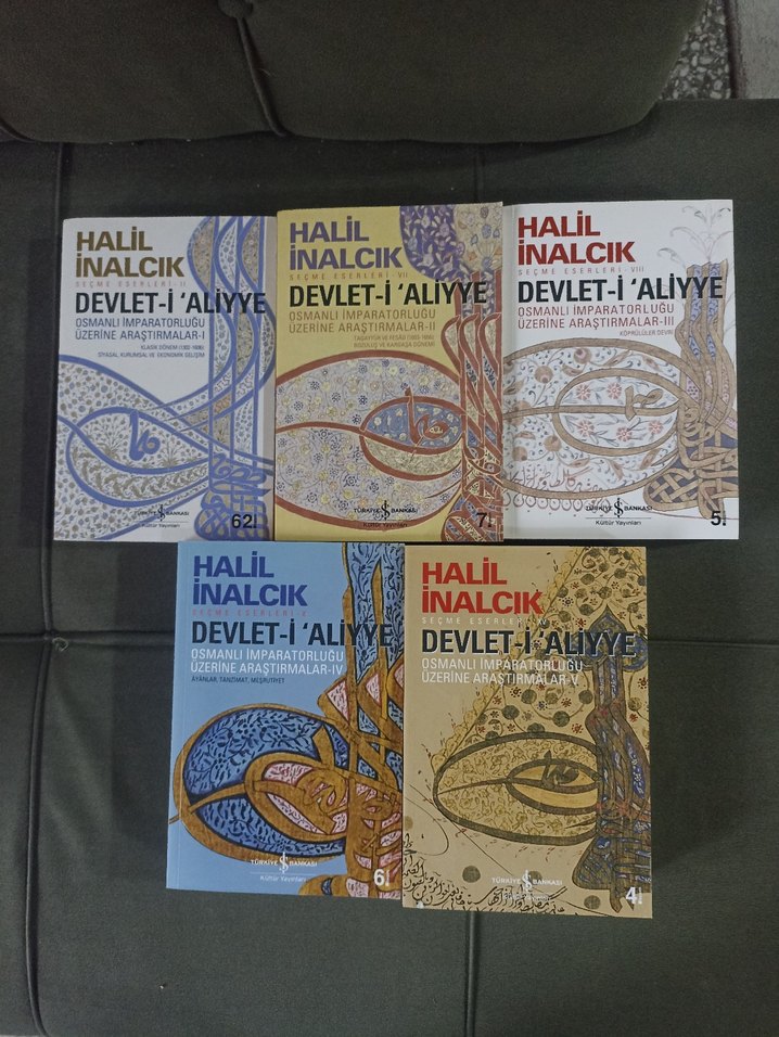 Halil İnalcık'ın Osmanlı İmparatorluğu üzerine araştırmalarını içeren Devlet-i Aliyye kitap seti, çeşitli ciltlerden oluşmaktadır. Sıfır kitaplardır.