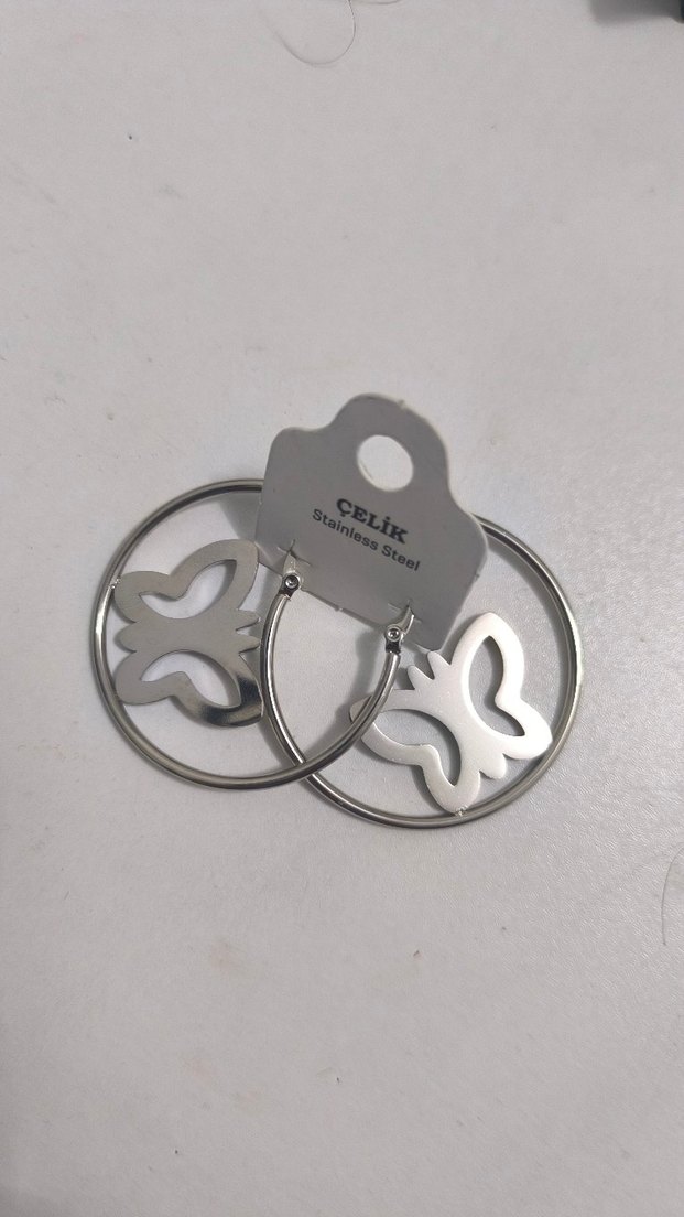 Halka Çelik Kelebek Desenli Stainless Steel Küpe