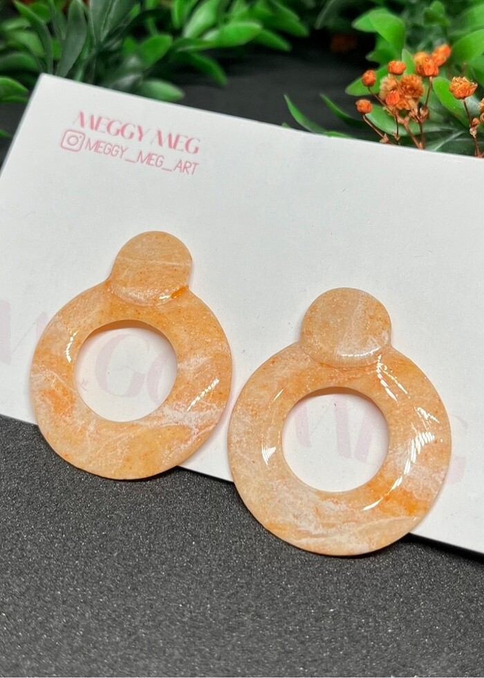 Polimer kil ve epoksi malzemeden hazirlanmistir. Kupe ignesi plastiktir, bijuteri alerjisi olanlar rahatlikla kullanabilir. El yapimidir ve essizdir.