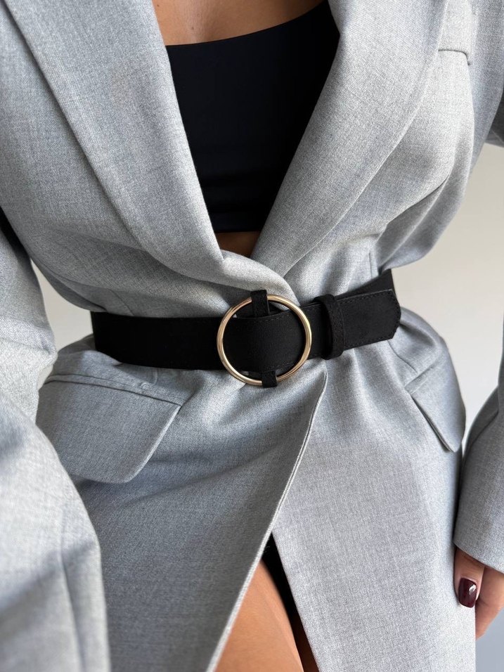 Halka Tokalı Siyah Süet Kadın Kemer