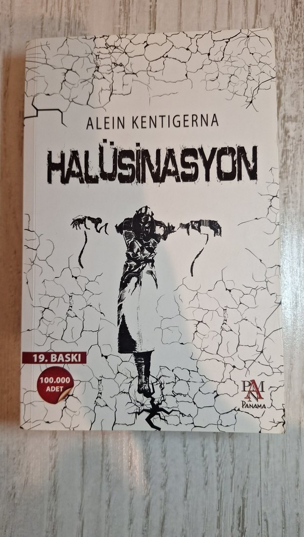 Alein Kentigerna'nın 'Halüsinasyon' adlı romanı, 19. baskı, çatlak desenli kapak ve Panama yayınevinden, 100.000 adet basılmış.