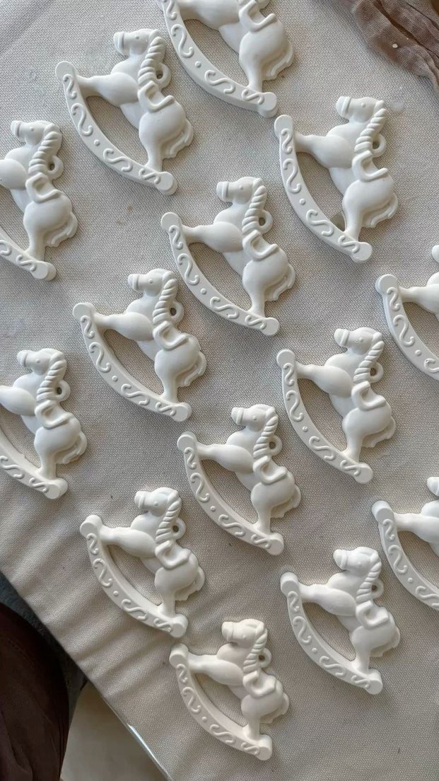 Beyaz sallanan at şeklinde, tırnaklara eğlenceli bir dokunuş katacak süslemeler. boyama etkinliği için uygundur adet fiyati