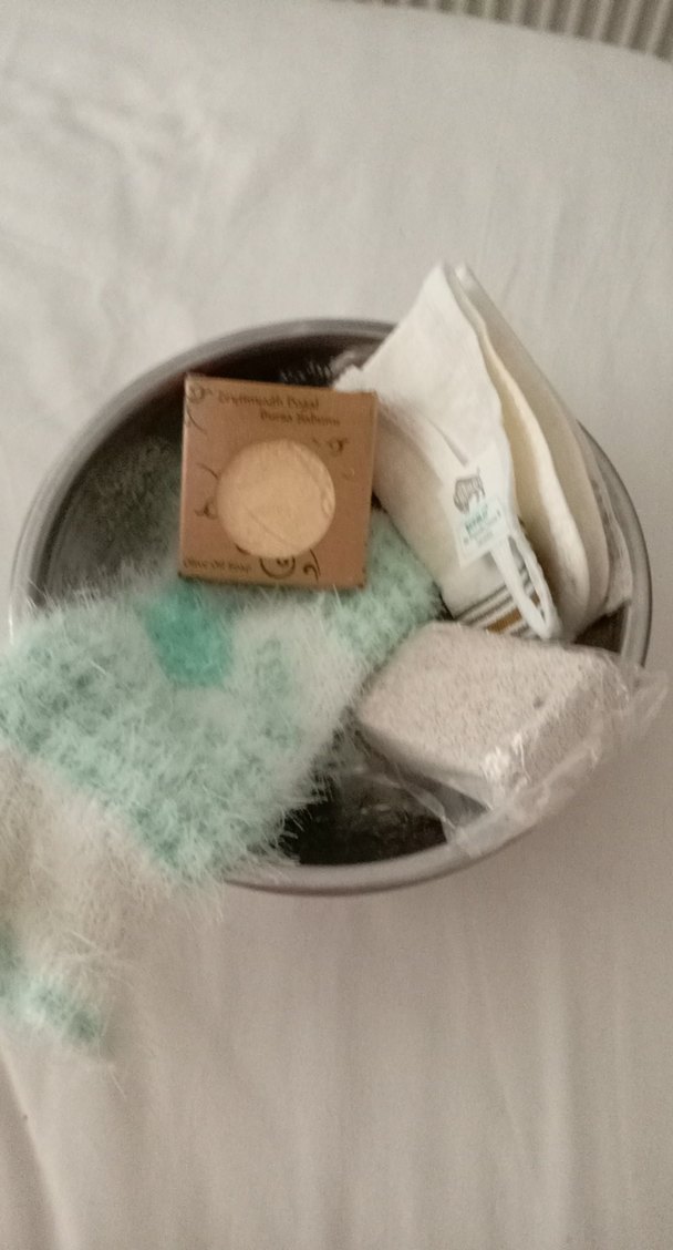 bir adet taş. bir adet lif.bir adet pomza taşı. bir adet doğal sabun