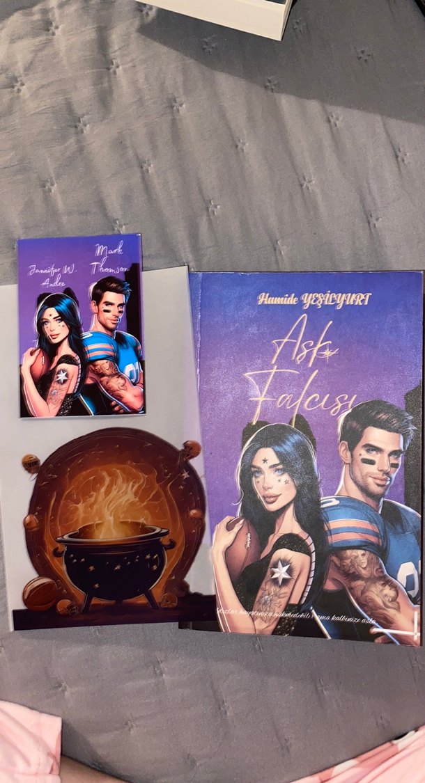 Hamide Yeşilyurt'un 'Aşk Falcısı' kitabı, illüstrasyonlu karakterler ve mistik bir tema içerir; astroloji ve fal meraklıları için uygun .