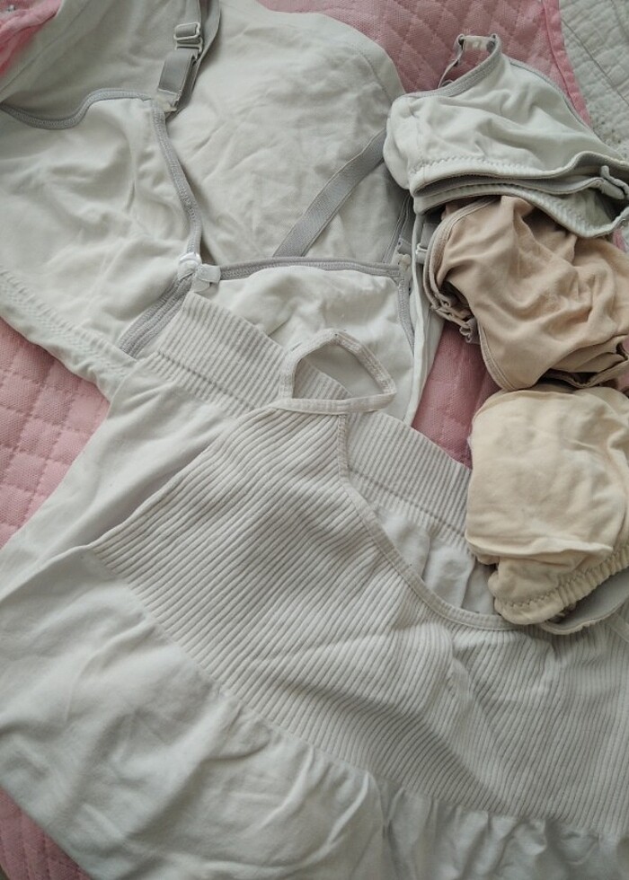 Kullanılmış ürünler. Kullanmaya engel bir durumlari yoktur. Bir hamile atleti, 1 sütyenli emzirme atleti, 3 emzirme sütyeni toplam 5 parça.