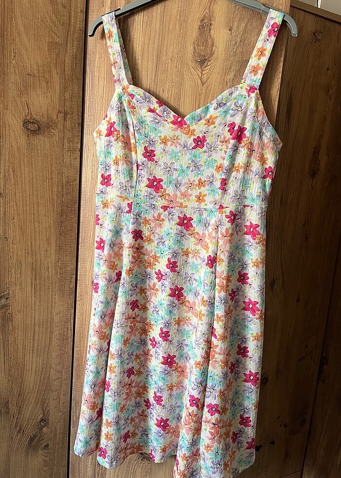 Çiçek desenli likralı arkası büzgülü kalın askılı hamile elbisesi
