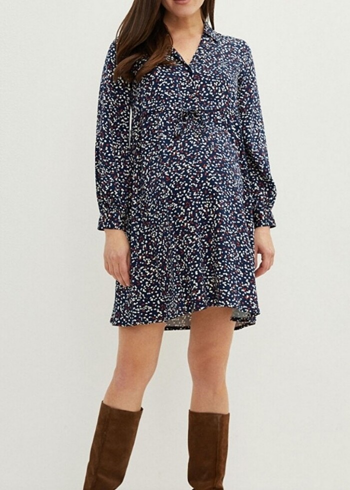 Gömlek Yaka Desenli Uzun Kollu Emzirme Özellikli Poplin Hamile Elbisesi Fazla Giyilmemistir Yeni Gibidir