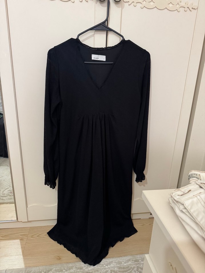 Siyah diz altı, V yaka ve uzun kollu, hamile elbisesi. Sadece 1 kez kullanıldı. S beden. Tatlı bir elbise